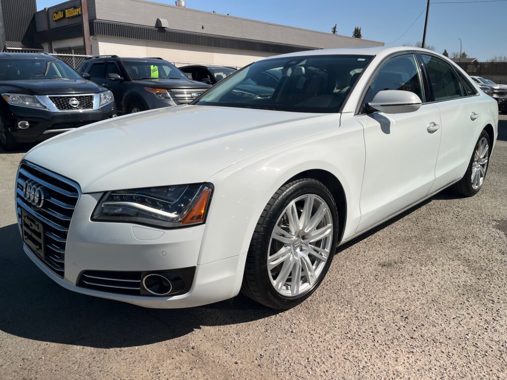 2013 AUDI A8 3.0T QUATTRO TURBO ENGINE & 8 SPEED AUTOMATIC TRANSMISSION WITH MANUAL MODE, AWD, 333 HORSE POWER, LOW MILEAGE, (BSM) BLIND SPOT MONITORING, (ACC) ADAPTIVE CRUISE CONTROL, NAVIGATION, 360 & BIRD-EYE-VIEW CAMERA, SUNROOF, BLUETOOTH, FRONT & REAR SENSORS, AIR SUSPENSION, KEYLESS & PASSIVE ENTRY, PUSH BUTTON START, AUTO STOP START ENGINE, LEATHER SEATS, DRIVER & PASSENGER POWER MEMORY HEATED SEATS, REAR HEATED SEATS, DUAL & REAR CLIMATE CONTROL, POWER, HEATED & TILT STEERING, SOFT-CLOSE DOORS, REAR…